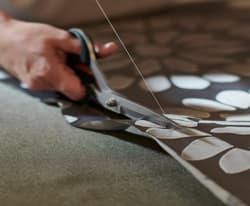 Il me semble que le tissu rayé au métrage - côté verso de la housse de couette - pourrait être intéressant. Bien cordialement